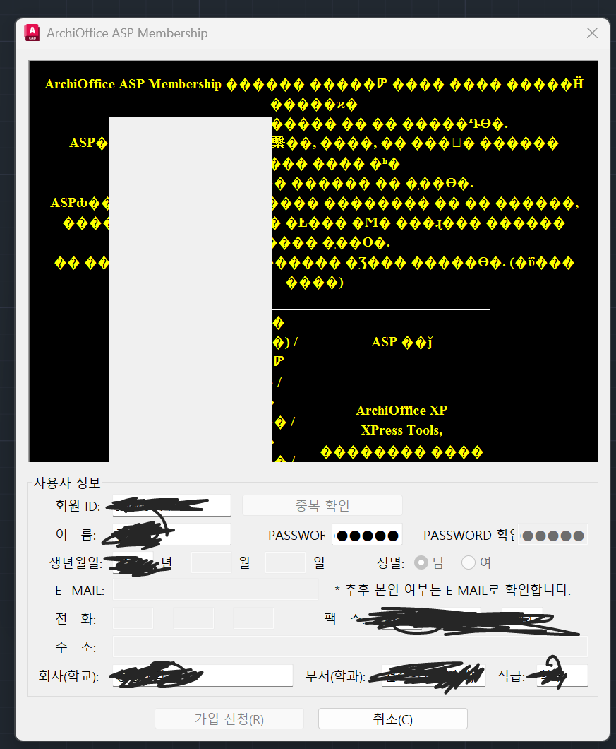 asp 회원가입을 하려고 하니깐 저렇게 뜨고 지금 검은 색으로 지워둔 부분 말고는 아예 입력 자체가 안 됩니다.