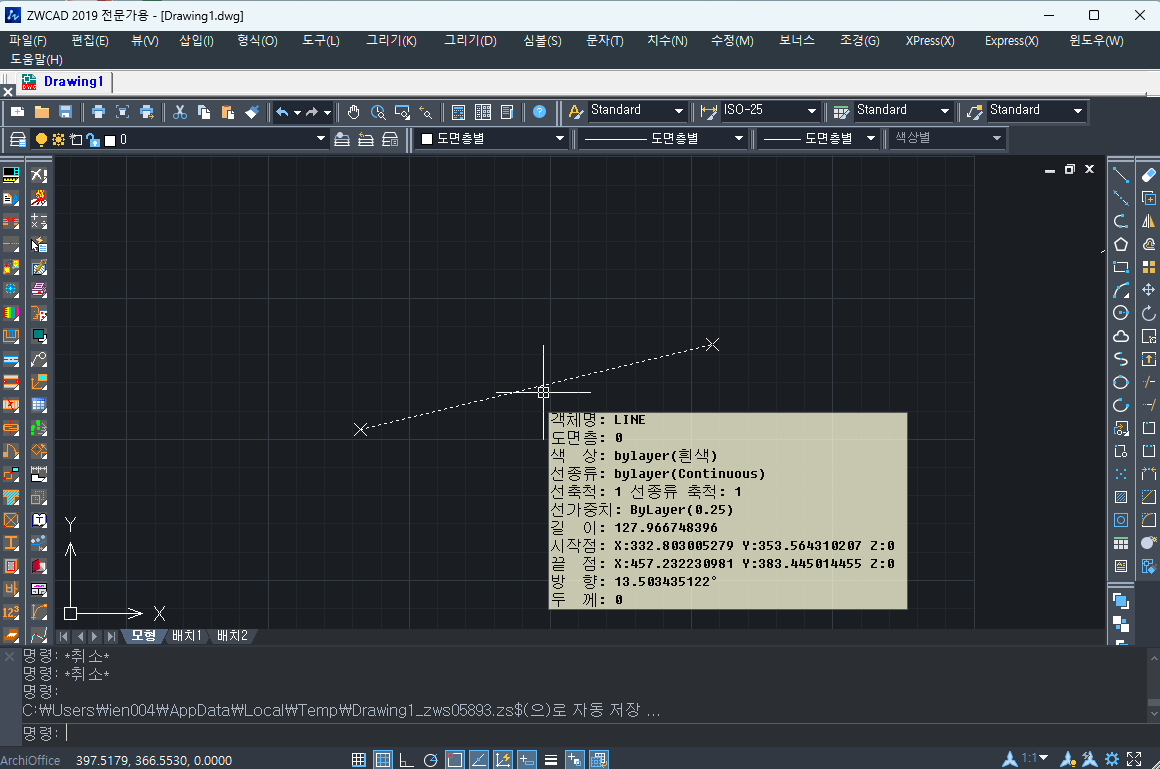 zwcad2019 + archioffice 에서 예시 사용을 아래에 보여드립니다.