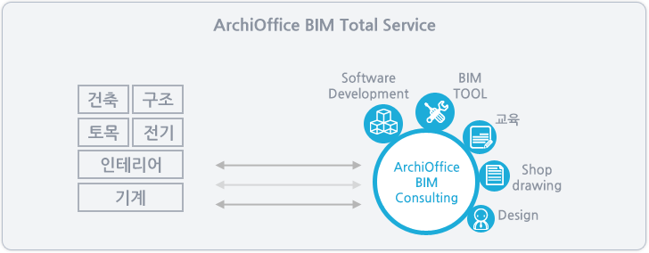 ArchiOffice는 기획부터 공사단계까지 다양한 분야에 BIM 전문컨설팅을 제공하고 있으며, 국내 최고수준의 설계팀이 사업주의 꿈을 이뤄 드립니다. 특히, ArchiOffice 개발 노하우로 만들어진 BIM Tool을 제공하고, 좀 더 효율적이고 정확한 설계가 되도록 노력하고 있습니다.