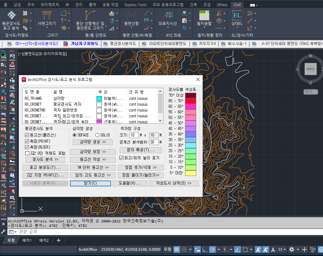 경사도별 색상표를 클릭하여 경사도의 색상을 바꿀 수 있습니다.