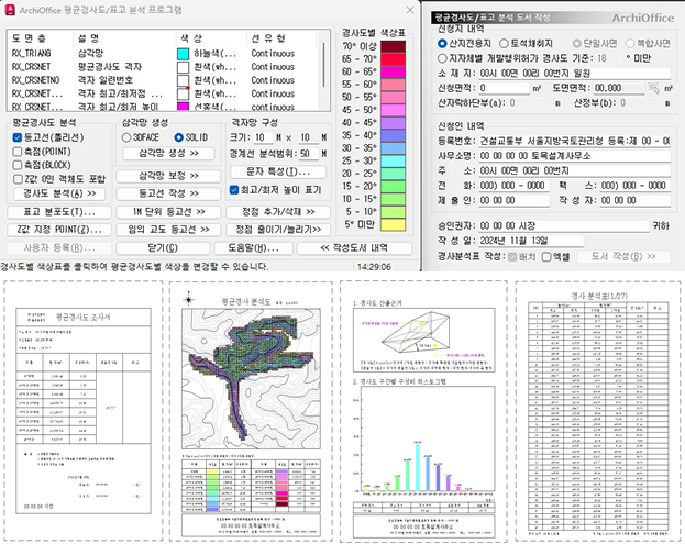 평균경사도 분석 대상(측점, 등고선)을 지정할 수 있습니다.